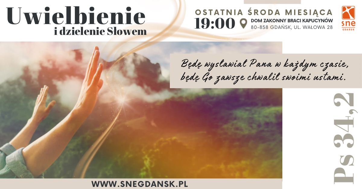 Serdecznie zapraszamy wszystkich członków wspólnot oraz sympatyków Gdańskiej Szkoły Nowej Ewangelizacji na comiesięczne spotkania uwielbienia i dzielenia się Słowem Bożym. Spotkania będą odbywać się w każdą ostatnią środę miesiąca.